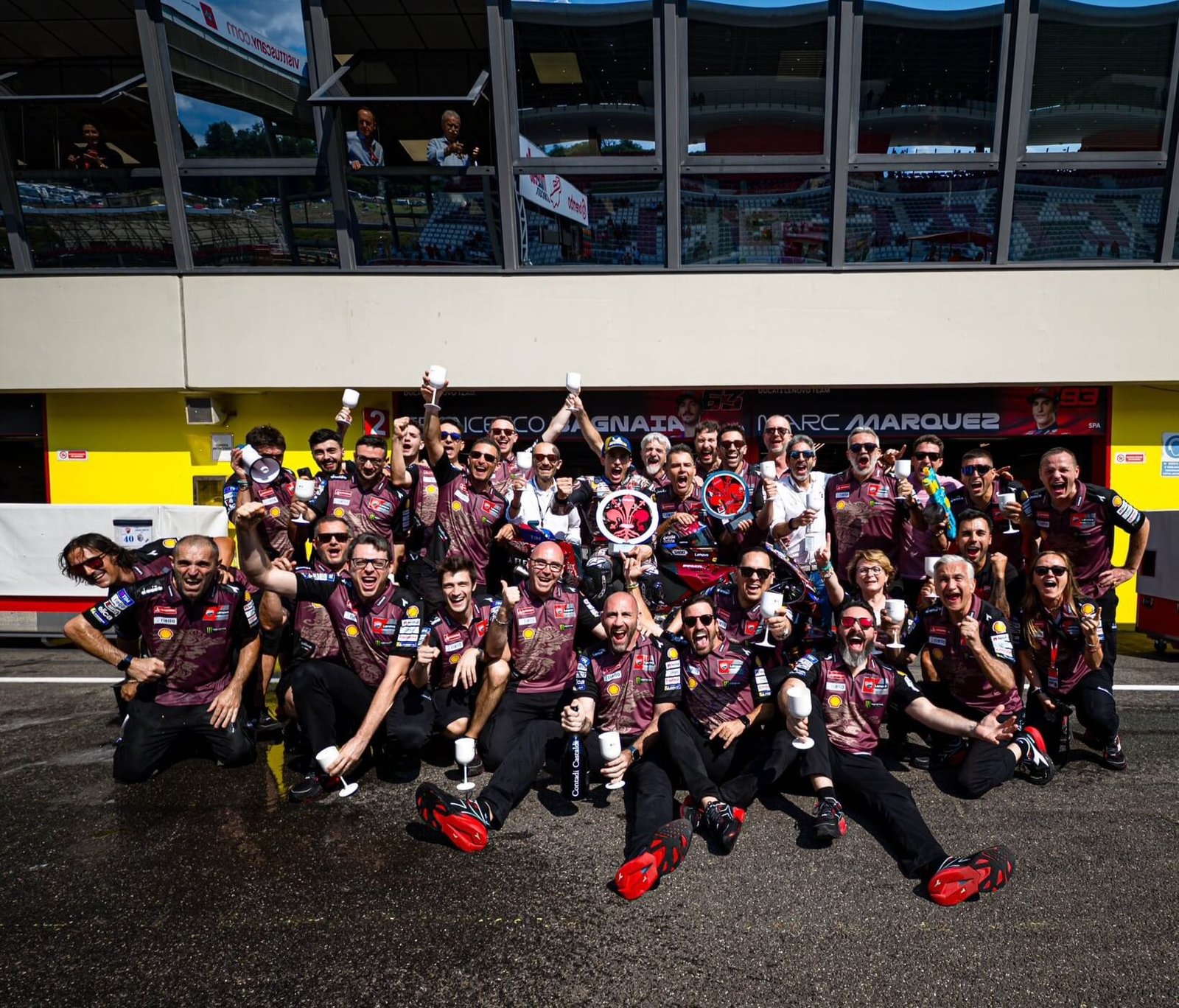 Alessio Salucci, bos tim Valentino Rossi, memuji Marquez sebagai "pebalap terkuat di MotoGP saat ini," mengakui keganasannya musim ini. Penggemar di X juga ramai memuji, dengan akun @LambeResing menyebut kemenangan Marquez sebagai "rekor di depan idola Ducati." Namun, Bagnaia menyatakan kekecewaannya, mengeluhkan masalah roda depan yang menghambat performanya, bahkan sempat berdebat dengan bos Ducati, Luigi Dall’Igna.